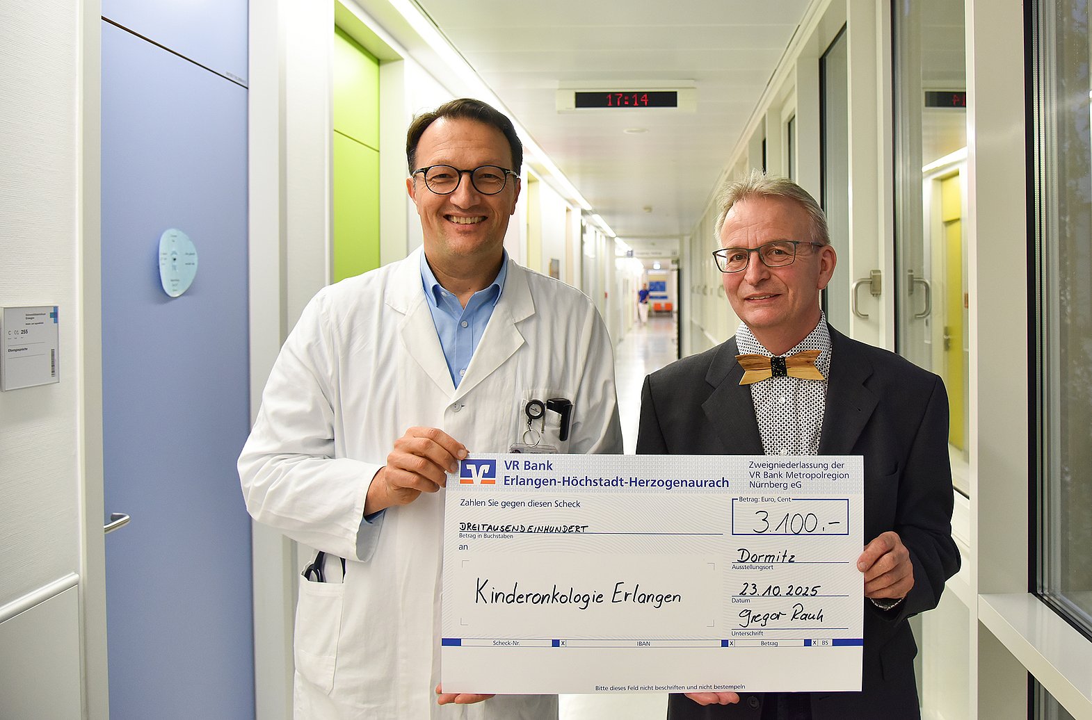 Schreinermeister Gregor Rauh spendet 3.100 Euro an die Erlanger Kinderonkologie
