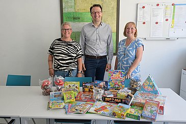 „Mit meiner Aktion möchte ich den kleinen und großen Kämpferinnen und Kämpfern in der Kinderklinik ein Lächeln ins Gesicht zaubern und ihre Augen zum Strahlen bringen“, erklärte Lilly Heubeck bei der Übergabe. Über ihren Instagram-Auftritt @Kleine.Superhelden22 erreichte sie zahlreiche Menschen aus ganz Deutschland, die über eine nach bestem Wissen und Gewissen erstellte Wunschliste Beschäftigungsmaterialien für Groß und Klein kauften. „Es sind die kleinen Dinge, die zum Beispiel während der Wartezeiten etwas ablenken und die Sorgen für einen Moment vergessen lassen“, sagte Lilly Heubeck. Prof. Metzler bedankte sich herzlich für die Geschenke, die das Team der Kinderonkologie in der Ambulanz und in der Tagesklinik verteilen wird: „Schön, dass Sie an die Kinder und ihre Eltern denken und die Spiele und Bücher so toll ausgewählt haben. Die Geschenke sind eine wichtige Stütze für die Familien.“ Lilly Heubeck sammelt auch weiterhin für die kleinen und großen Superheldinnen und -helden und freut sich über Unterstützung jeder Art.