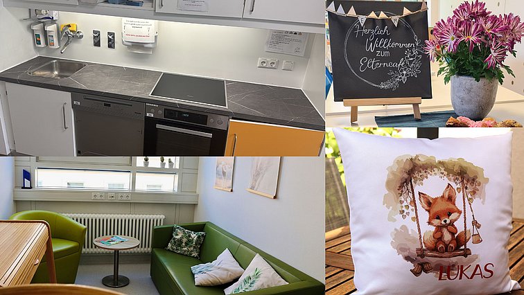 Zur Entlastung der Familien stellt die Elterninitiative eine Vielzahl weiterer Angebote bereit: Elternmassagen zur Förderung des Wohlbefindens, ein wöchentliches Elterncafé als geschützter Raum für Austausch und Begegnung sowie eine voll ausgestattete Elternküche, in der Angehörige kochen und Lebensmittel aufbewahren können. Außerdem gibt es ein Elterngesprächszimmer und zwei Elternfahrräder für Besorgungen in Kliniknähe.